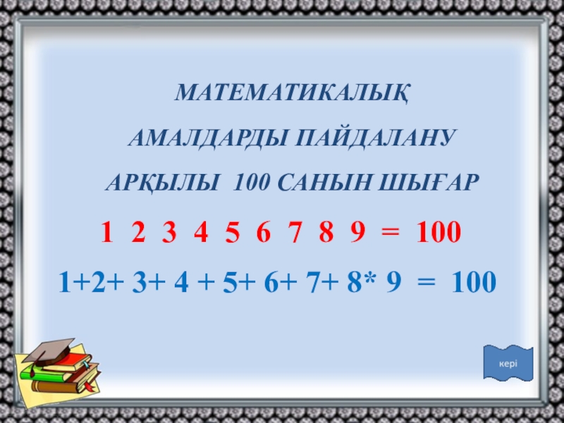 1+2+ 3+ 4 + 5+ 6+ 7+ 8* 9 = 100