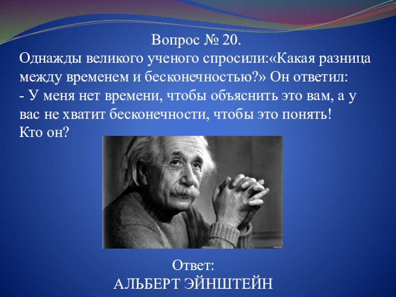 Однажды великого ученого спросили:«Какая разница между временем и бесконечностью?»
