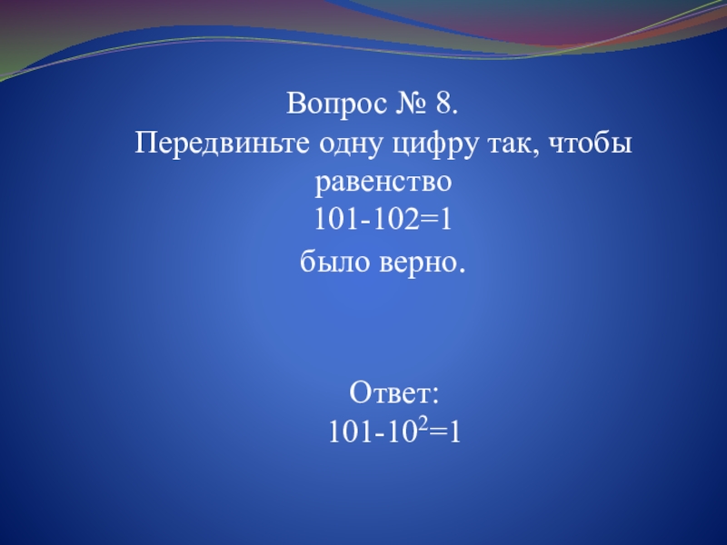 Передвиньте одну цифру так, чтобы равенство 101-102=1 было верно.