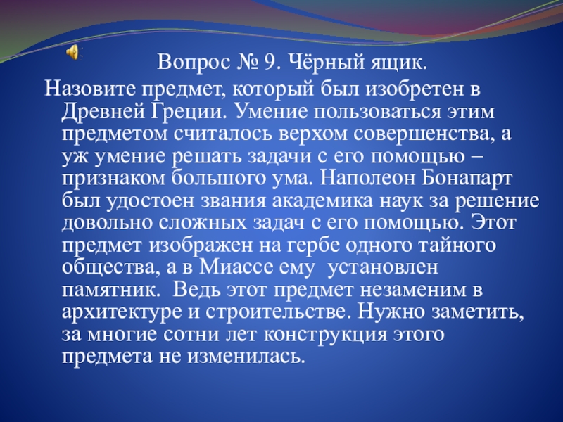 Слайд 13Вопрос № 9. Чёрный ящик.