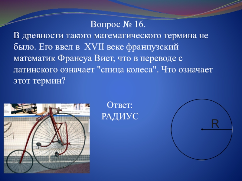 в XVII веке французский математик Франсуа Виет, что в переводе с латинского означает "спица колеса". Что означает этот термин?