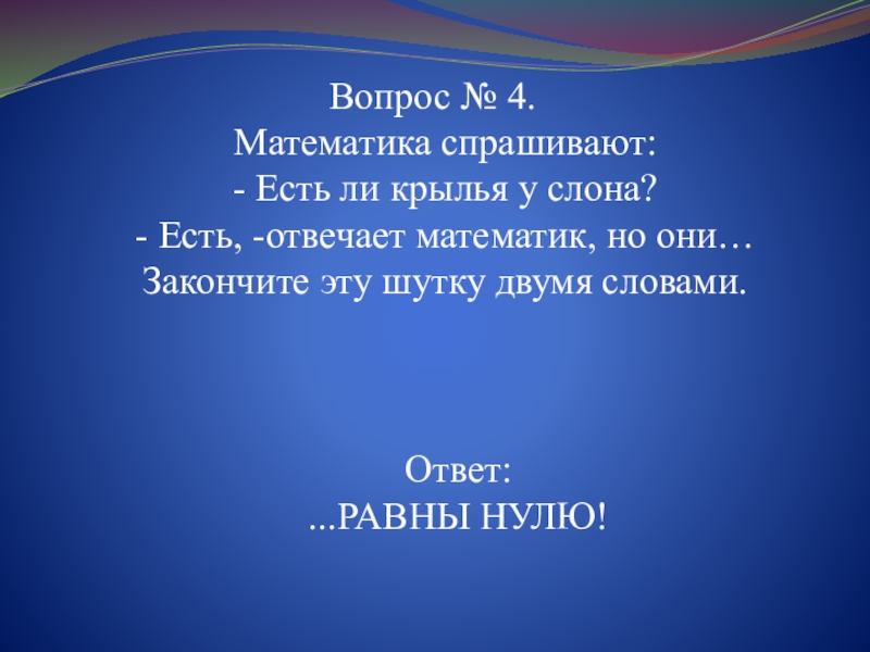 Математика спрашивают: - Есть ли крылья у слона? - Есть, -отвечает математик, но они… Закончите эту шутку двумя словами.