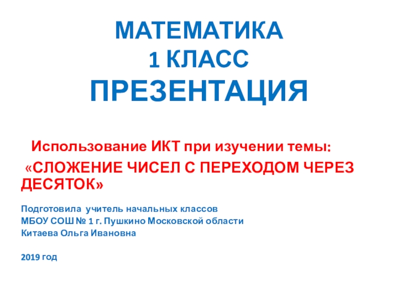 «СЛОЖЕНИЕ ЧИСЕЛ С ПЕРЕХОДОМ ЧЕРЕЗ ДЕСЯТОК»