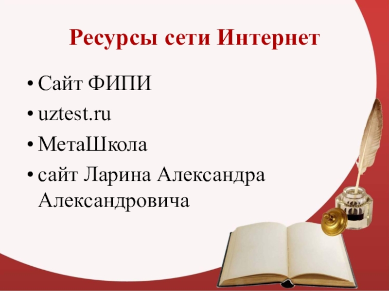 Ресурсы сети Интернет Сайт ФИПИ uztest.ru МетаШкола сайт Ларина Александра Александровича