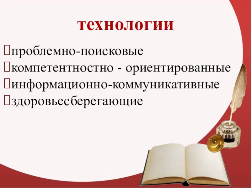 технологиипроблемно-поисковые компетентностно - ориентированные информационно-коммуникативные здоровьесберегающие