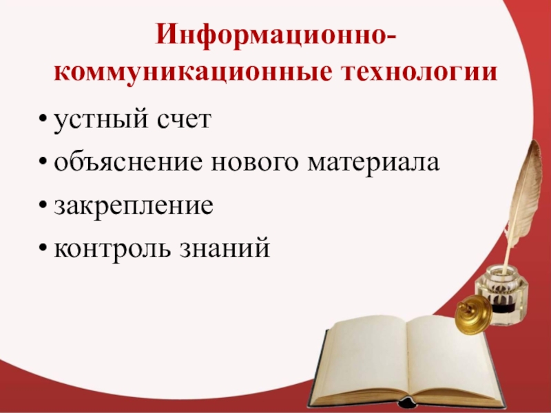 Информационно-коммуникационные технологии устный счет объяснение нового материала закреплениеконтроль знаний