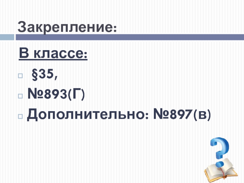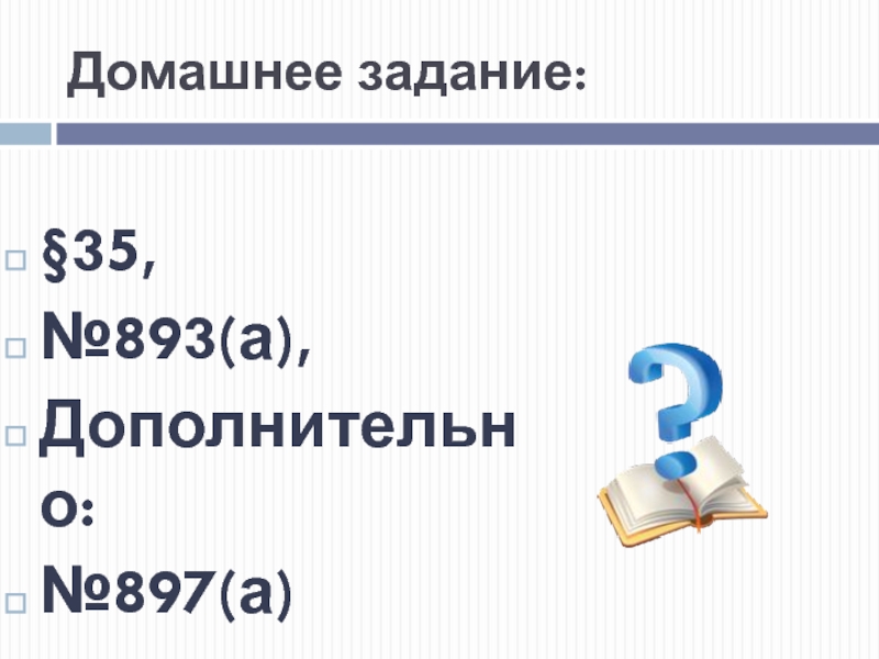 Домашнее задание:§35,№893(а),Дополнительно:№897(а)