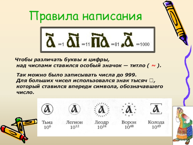 над числами ставился особый значок — титло ( ~ ).