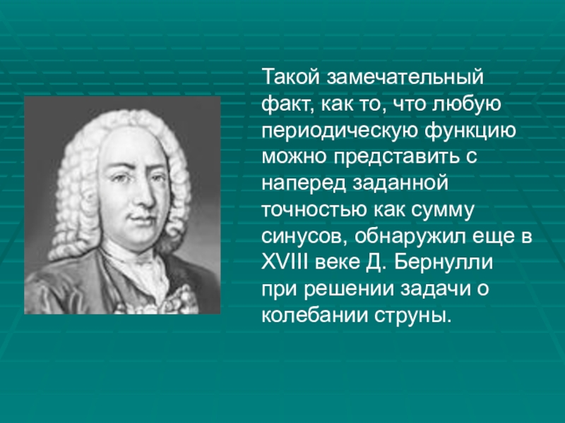 с наперед заданной точностью как сумму синусов, обнаружил еще в XVIII веке Д. Бернулли при решении задачи о колебании струны.