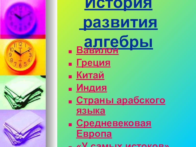 Истоки алгебры восходят к глубокой древности. Уже около 4000
