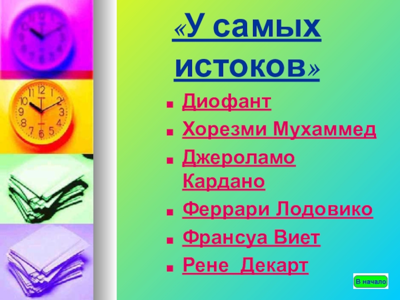 Диофант, александрийский математик, 325—409. Оставил арифметику целых и