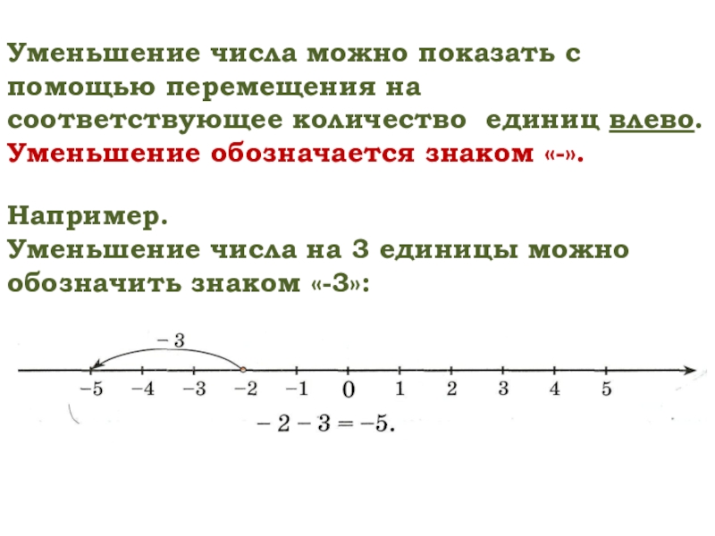 Уменьшение числа на 3 единицы можно обозначить знаком «-3»: