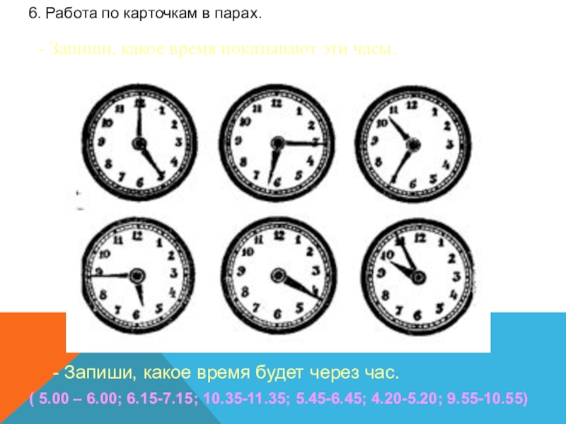 ( 5.00 – 6.00; 6.15-7.15; 10.35-11.35; 5.45-6.45; 4.20-5.20; 9.55-10.55)
