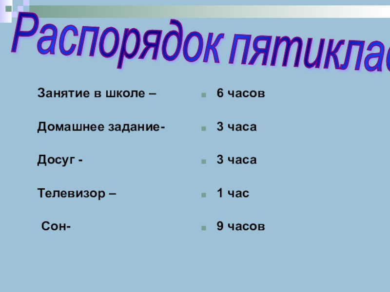Распорядок пятиклассника