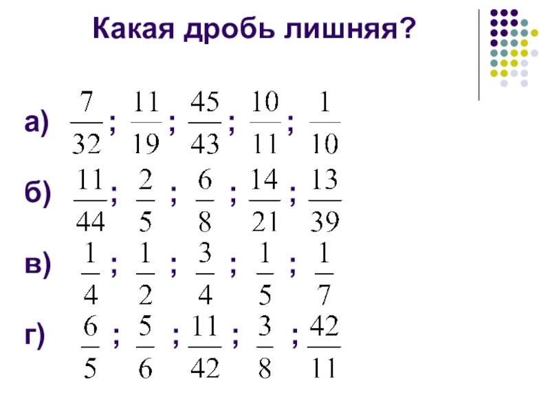 Какая дробь лишняя?а) ; ; ; ; б) ; ; ; ;