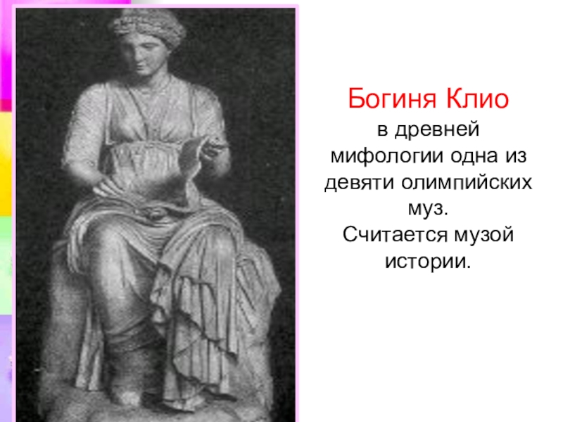 ведала богиня Клио. Её обычно изображали со свитком в одной руке и грифельной палочкой в