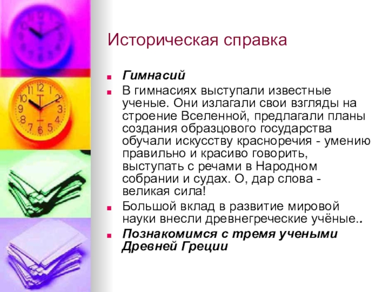 В гимнасиях выступали известные ученые. Они излагали свои взгляды на