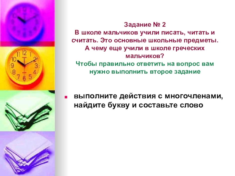 в школах греческих мальчиков? Чтобы правильно ответить на этот вопрос, вам нужно выполнить второе задание.