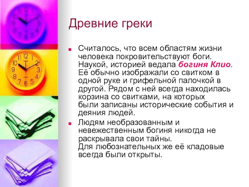 Считалось, что всем областям жизни человека покровительствуют боги. Наукой, историей