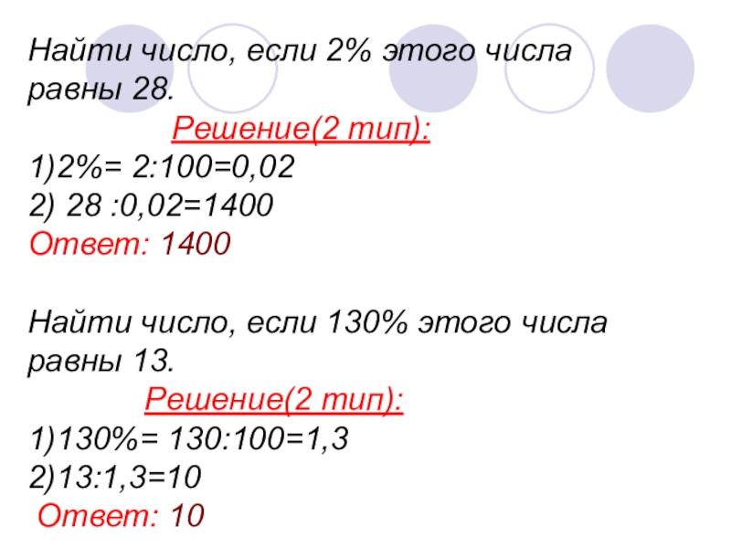 Слайд 9Найти число, если 2% этого числа равны 28.