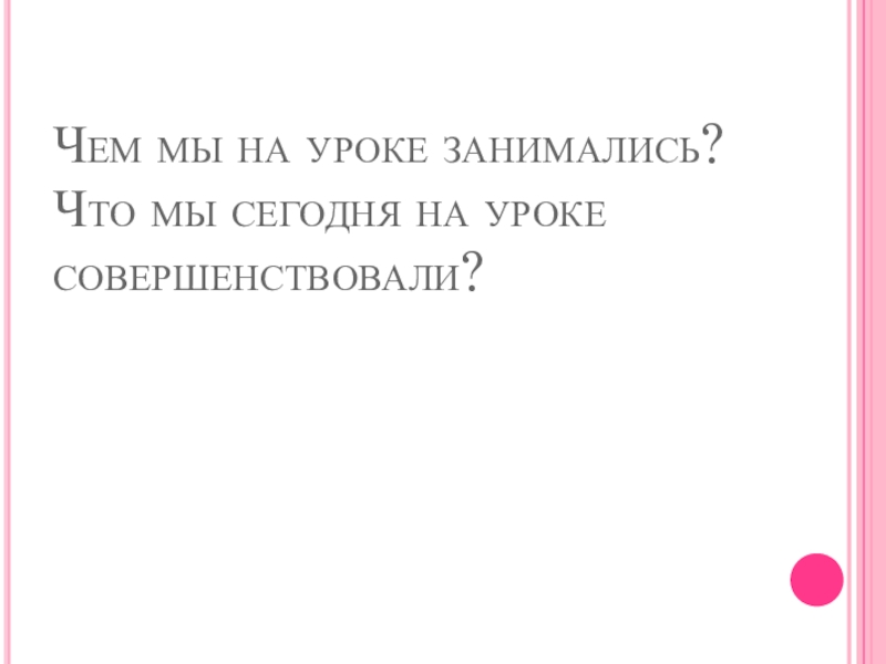 Слайд 20Чем мы на уроке занимались? Что мы сегодня на уроке совершенствовали?