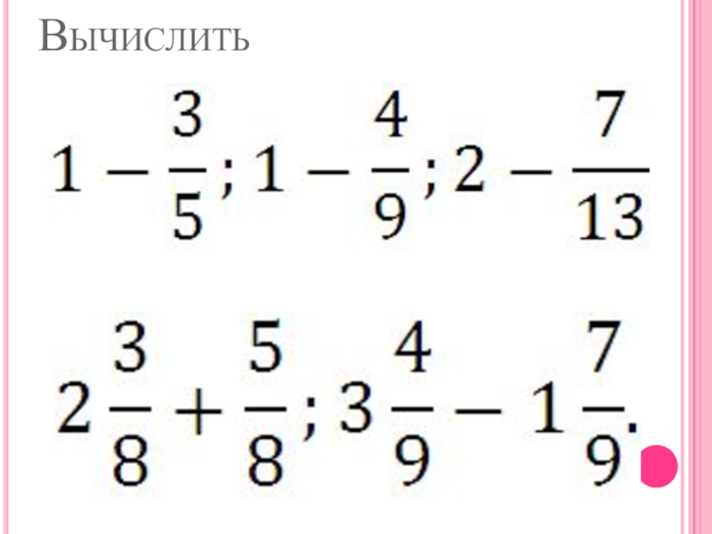 Решение уравнений и задач на сложение и вычитание смешанных чисел21.10.2013