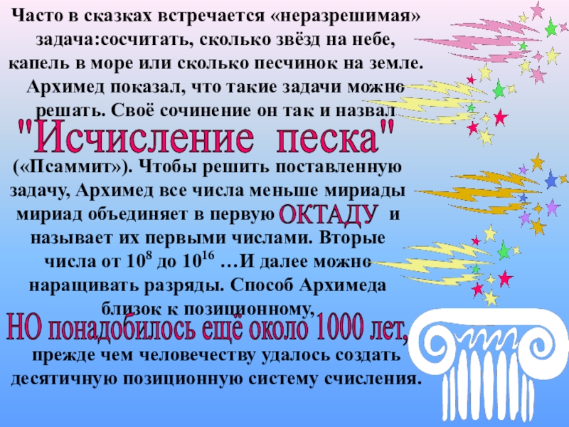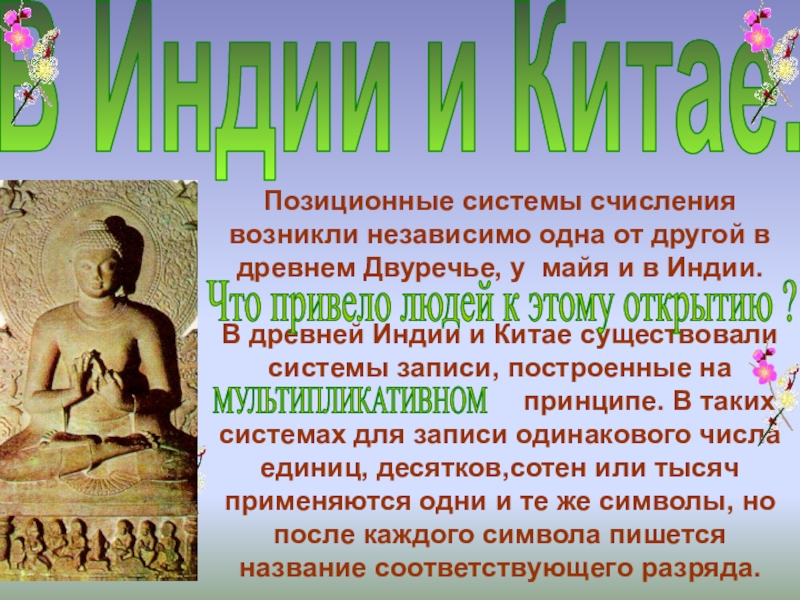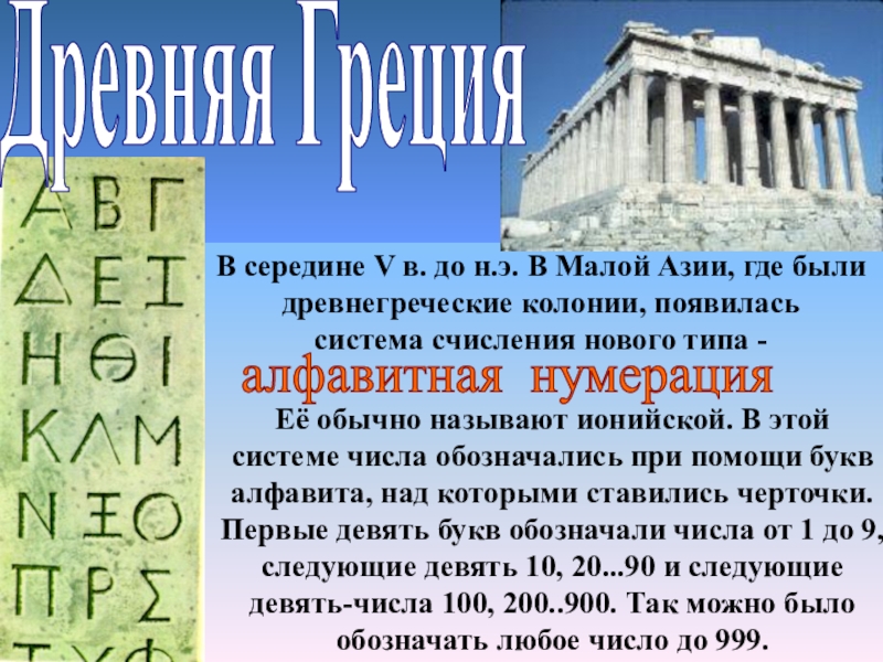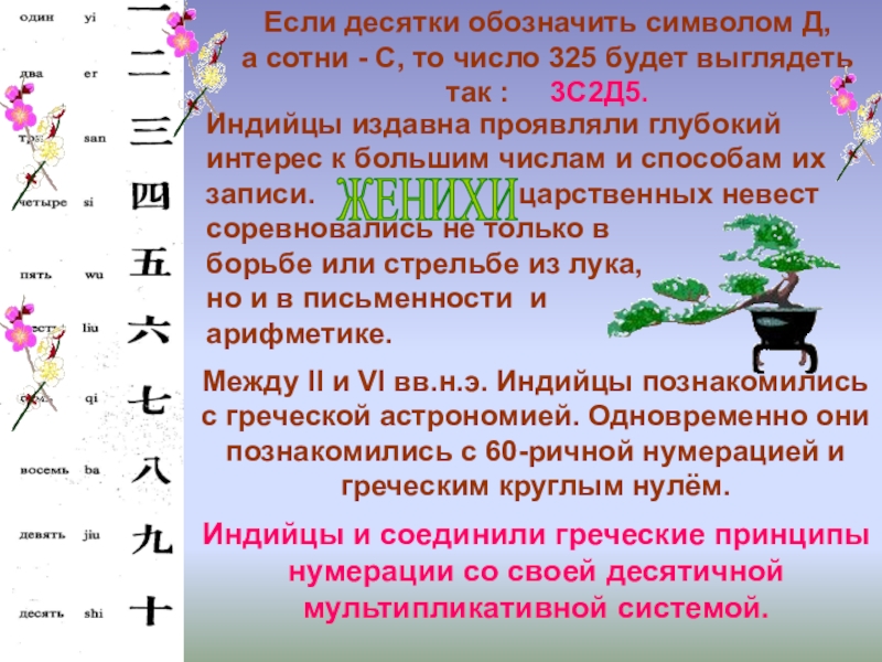 Индийцы и соединили греческие принципы нумерации со своей десятичной мультипликативной системой.