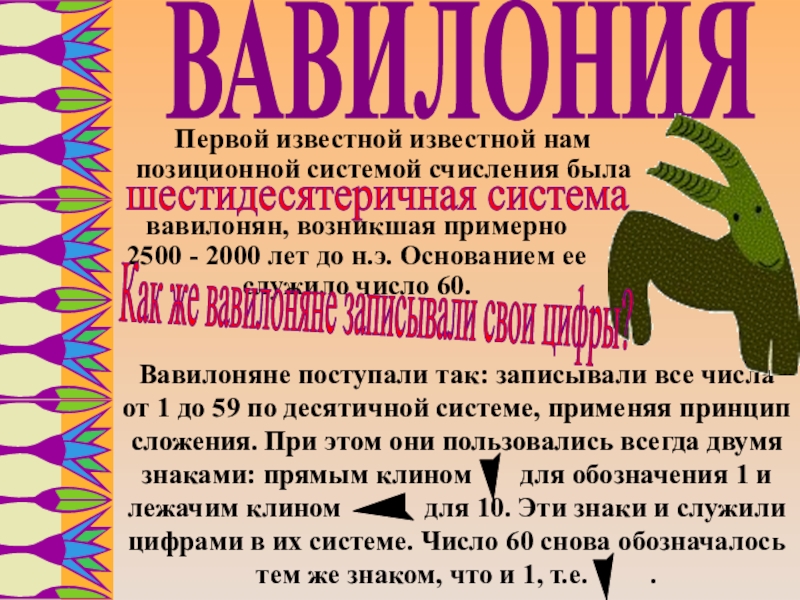 вавилонян, возникшая примерно 2500 - 2000 лет до н.э. Основанием ее служило число 60.