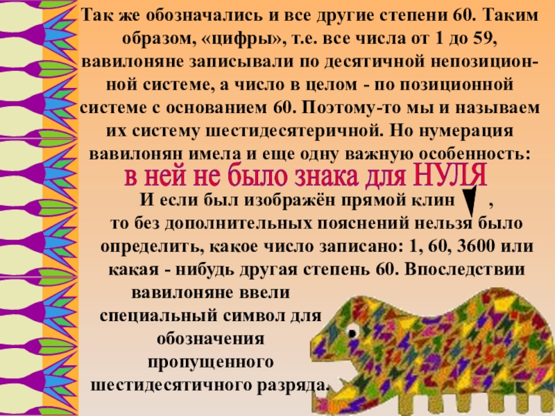 то без дополнительных пояснений нельзя было определить, какое число записано: 1, 60, 3600 или какая - нибудь другая степень 60. Впоследствии