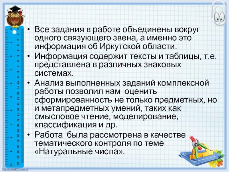Презентация, доклад по математике Комплексная работа как средство оценивания метапредметных результатов