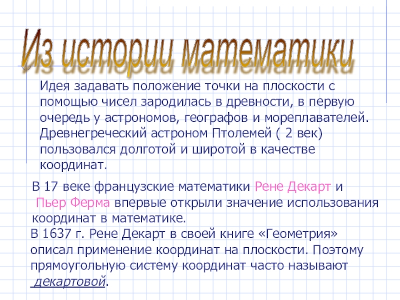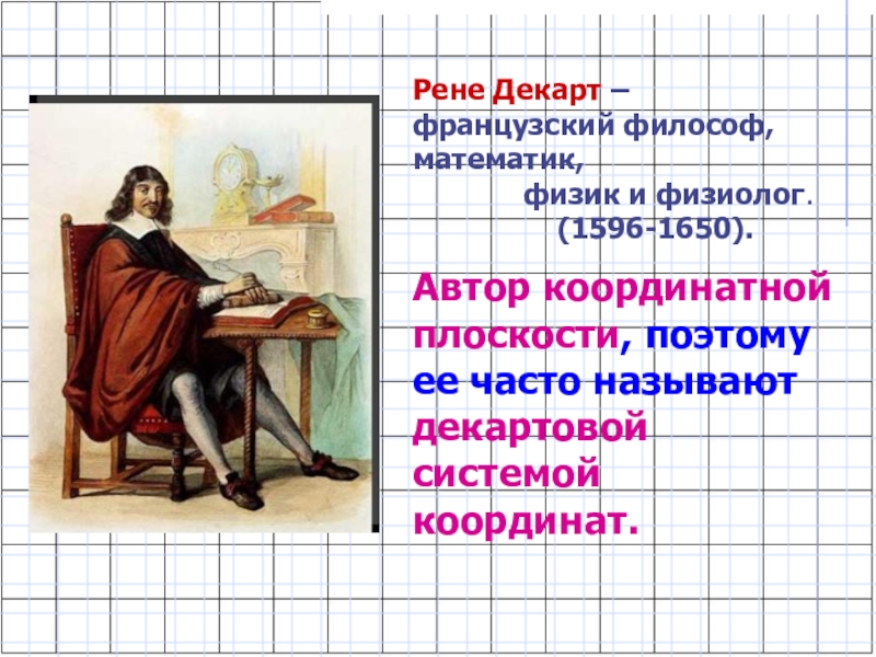 Автор координатной плоскости, поэтому ее часто называют декартовой системой координат.