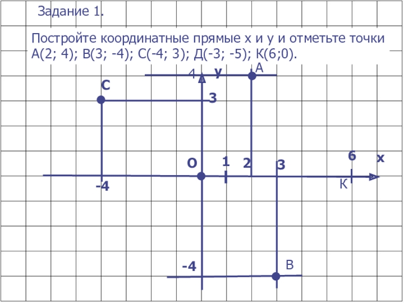 1. На оси абсцисс(ОХ) отметить точку с координатой -4