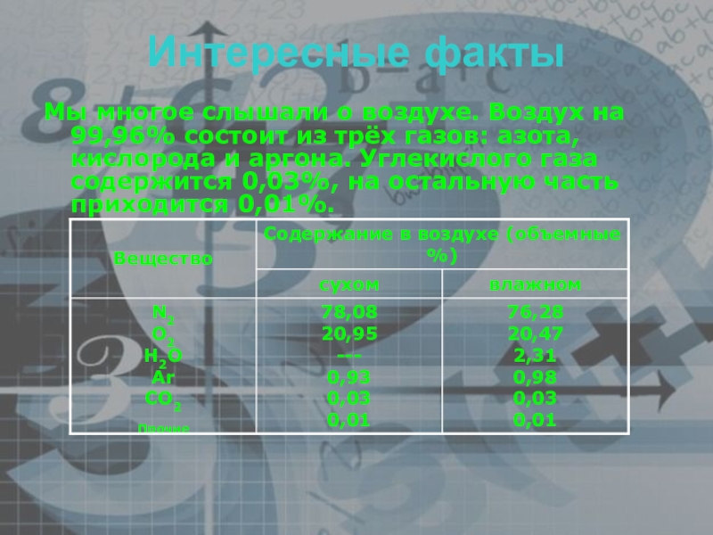 Мы многое слышали о воздухе. Воздух на 99,96% состоит из