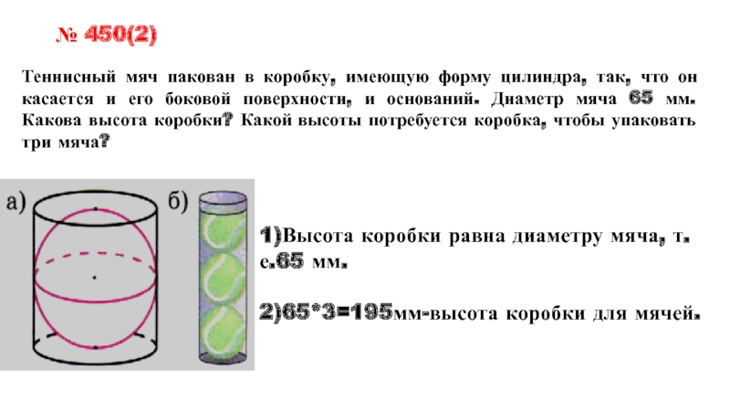 1)Высота коробки равна диаметру мяча, т.е.65 мм.