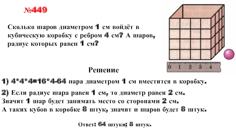 Значит 1 шар будет занимать место со сторонами 2 см.