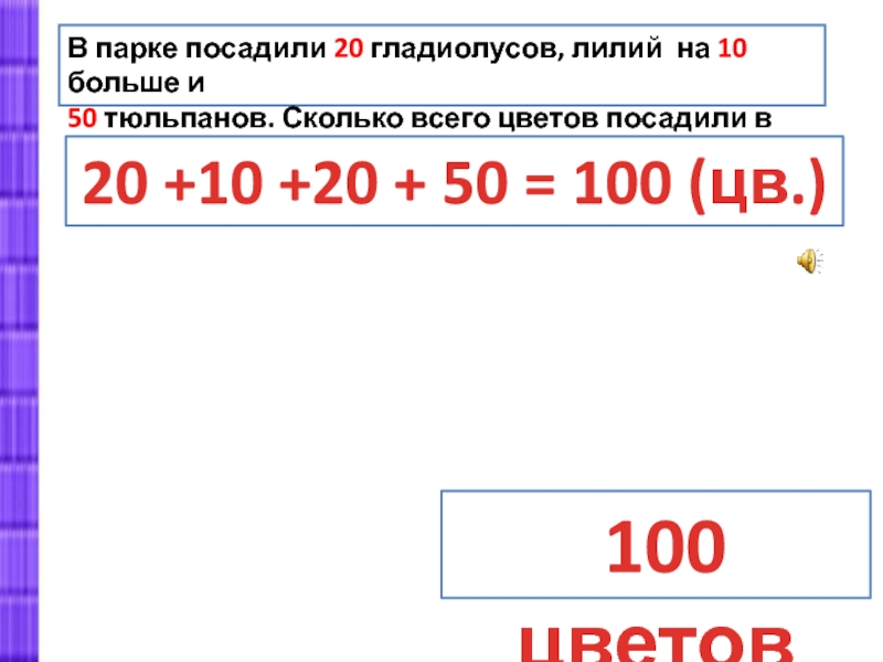 20 +10 +20 + 50 = 100 (цв.)