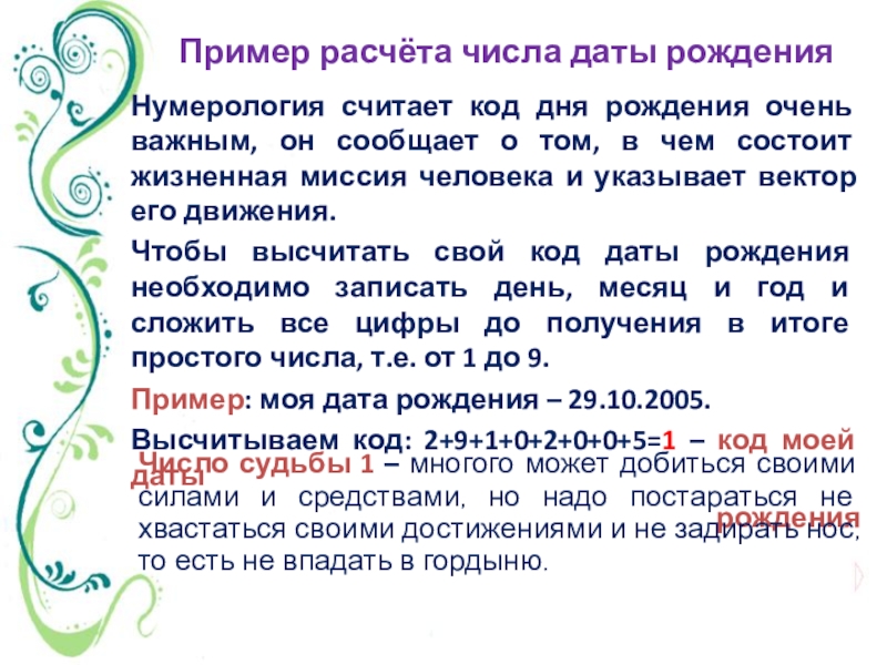 Число судьбы 1 – многого может добиться своими силами и средствами, но надо постараться не хвастаться своими достижениями и не задирать нос, то есть не впадать в гордыню.
