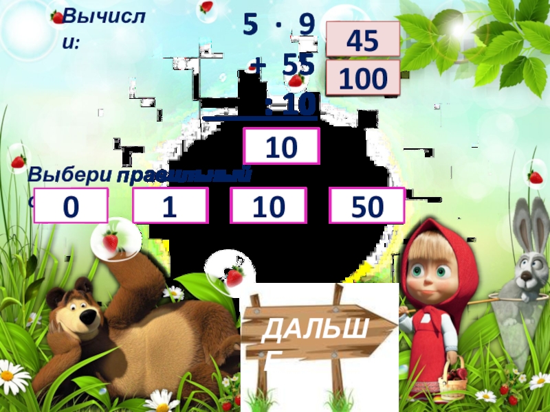 5 · 9    + 55    : 10Вычисли:Выбери правильный ответ:0104510015010
