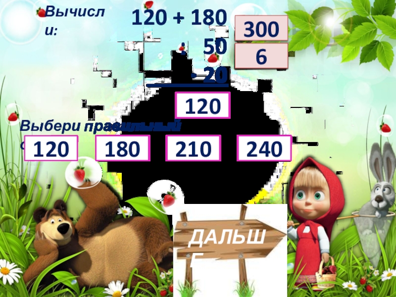 120 + 180    :  50    · 20Вычисли:Выбери правильный ответ:2101203006180240120