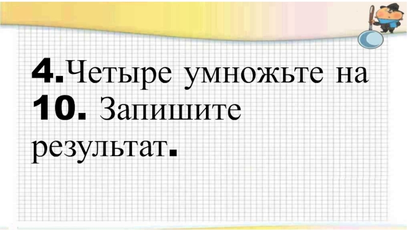 4.Четыре умножьте на 10. Запишите результат.