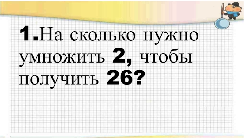 Слайд 21.На сколько нужно умножить 2, чтобы получить 26?