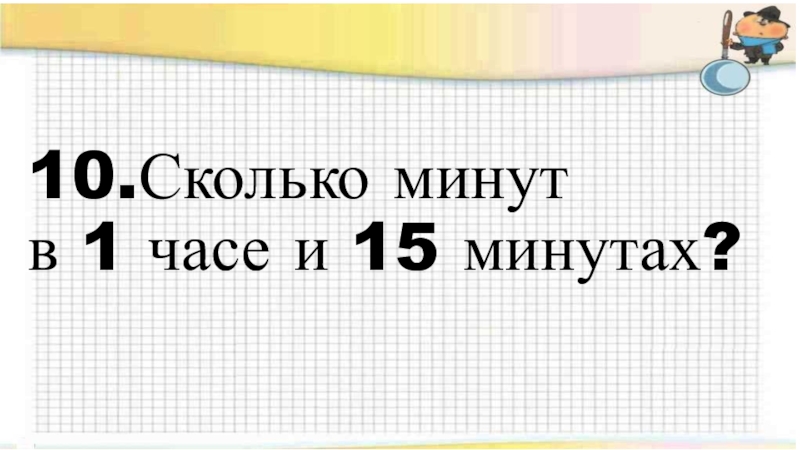 10.Сколько минут  в 1 часе и 15 минутах?