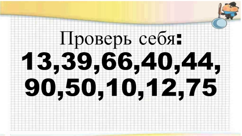 Слайд 12Проверь себя: 13,39,66,40,44, 90,50,10,12,75