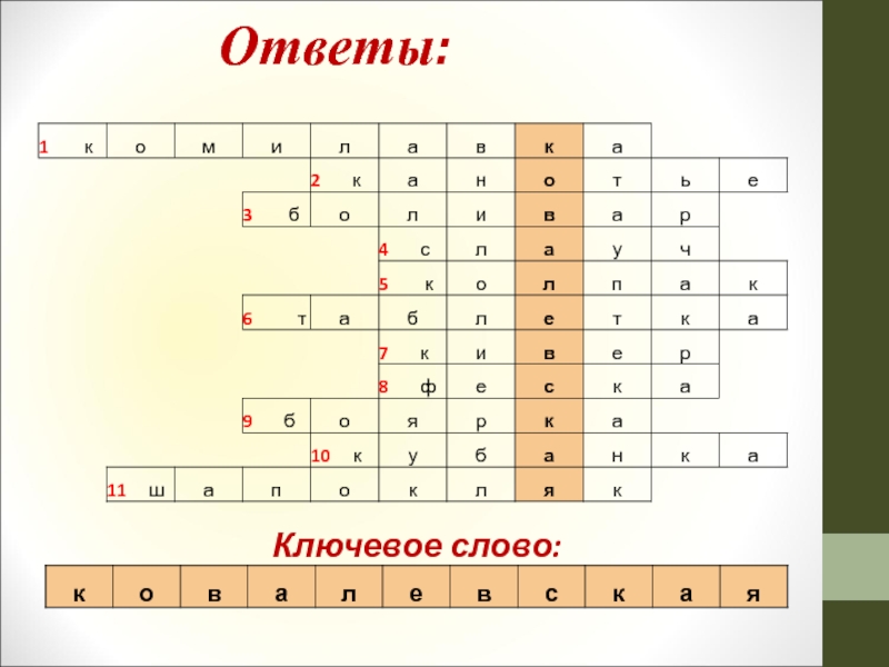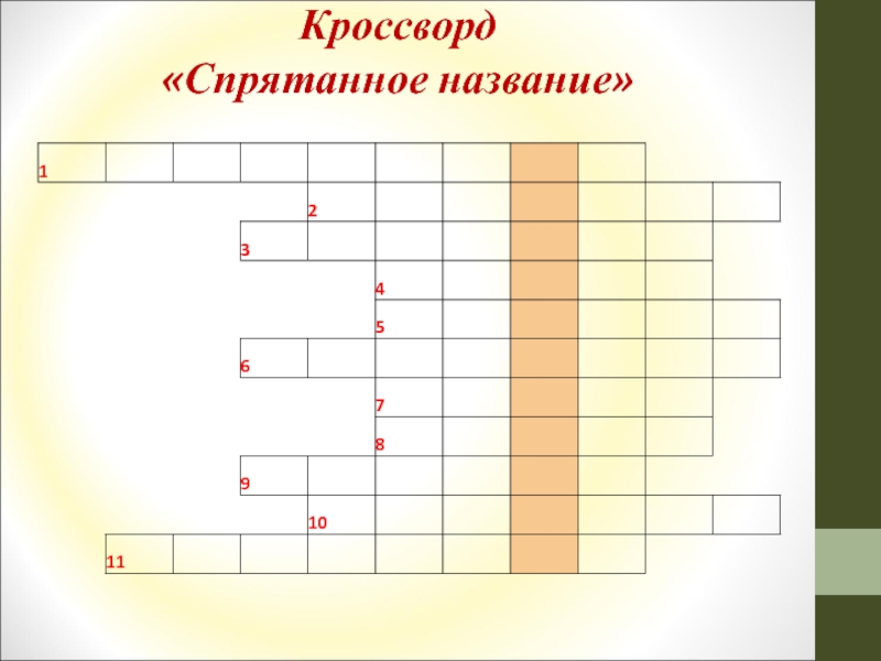 Слайд 4Кроссворд «Спрятанное название»