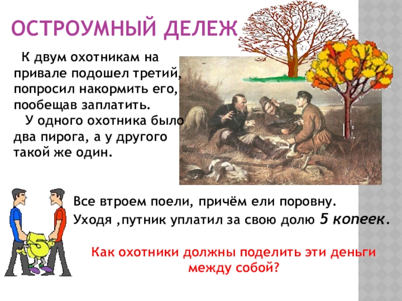 Как охотники должны поделить эти деньги