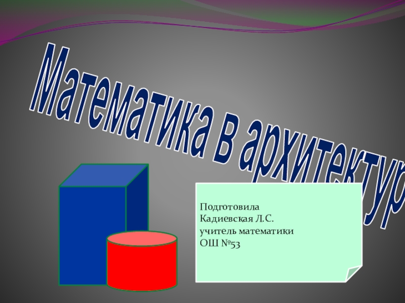 Математика в архитектуреПодготовилаКадиевская Л.С.учитель математики ОШ №53