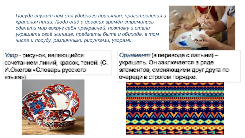 Узор - рисунок, являющийся сочетанием линий, красок, теней. (С.И.Ожегов «Словарь русского языка»)