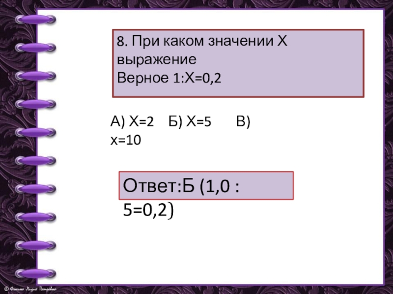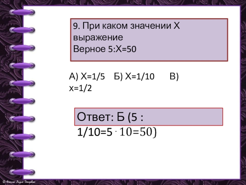Ответ: Б (5 : 1/10=5⋅10=50)
