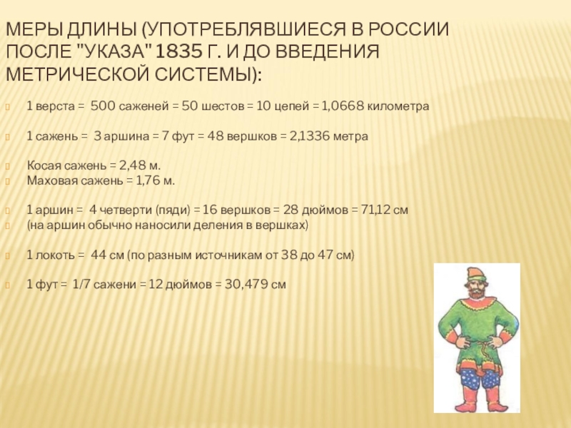 если учащиеся будут знать соотношение старинных русских мер и современных единиц измерения величин, то это поможет им легче понять содержание учебных и художественных текстов.