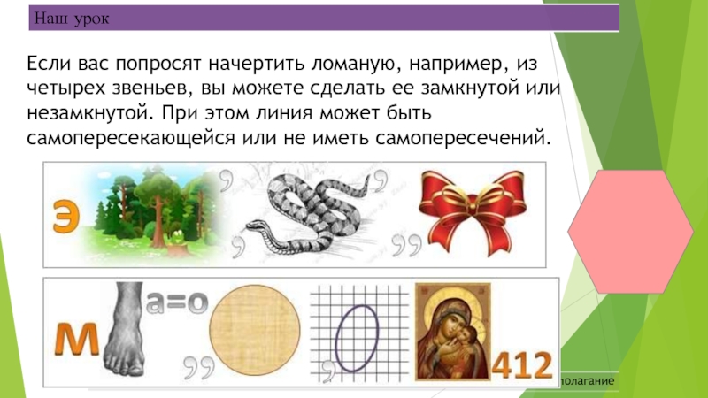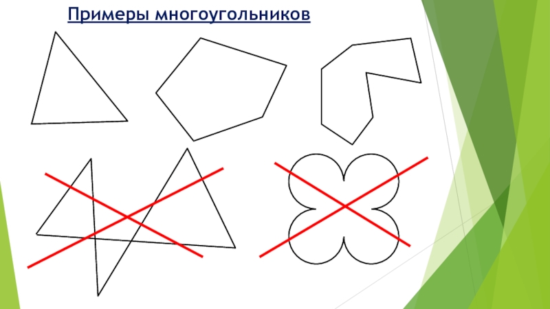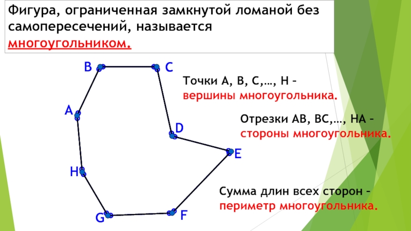 Фигура, ограниченная замкнутой ломаной без самопересечений, называется многоугольником.